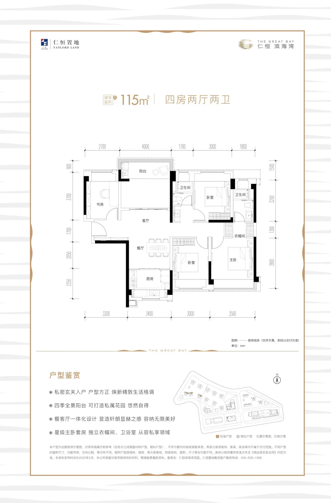 No.1 湾区实力比肩世界 珠海未来可期 粤港澳大湾区作为世界四大湾区之一,经济总量与纽约旗鼓相当,价值领跑。 珠海是唯一与港澳陆路相通城市,湾区规划三大重点城市之一,四大经济特区之一,粤港澳大湾区高质量新引擎。 珠海常年平均气温22.5°C,年平均相对湿度80%,已连续七次蝉联“全国十大宜居城市”榜首,有“浪漫之城”的美誉。 No.2 聚势高新 深珠融城核心 项目占据珠海唐家湾C位,位于深珠合作示范区核心。未来珠海将加快珠江口东西两岸融合互动发展,唐家将迎来质的飞跃。 No.3 仁恒深耕珠海17载 专注高端 仁恒置地,立足中国,以“善待土地,用心造好房”的开发理念,为城市打造土地价值与产品价值高度契合的作品。仁恒17年来深耕珠海,匠心打造仁恒滨海中心、仁恒星园、仁恒滨海半岛等高端物业。仁恒滨海湾,全国第三座高端线“滨海系”作品。仁恒所至,皆是价值所向。 No.4 湾区核心枢纽 比深圳更近前海 项目地处大湾区西岸桥头堡、深珠门户区,距离深珠通道的西岸落脚点仅1.5KM。通过广珠轻轨、深珠通道(规划中)等交通,打造粤港澳交通闭环,实现广深珠一小时生活圈。 No.5 城市快线交汇处 10分钟通达主城区 项目拥1站(珠海北站)、3轨(广珠城轨、深珠城轨、广州地铁18号线)、3桥(深珠通道、深中通道、港珠澳大桥)、2快线(兴业快线、金琴快线),湾区超级交通枢纽中心,约30分钟达前海,约1小时达白云机场。