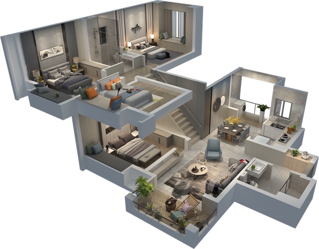 双套主卧,附带独立卫浴衣帽间设计 南北通透,尊享南向宽阔视野 复式双层,动静分明,互不打扰 双阳台设计,兼备生活整理及观景功能,包容生活万象